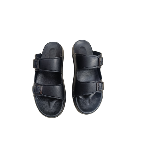 Men’s Double-Strap Buckle Slide – Black (CM-303)