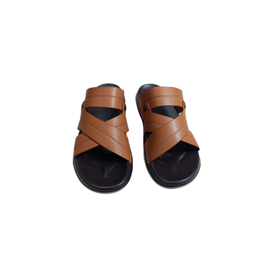 Men's Cross Strap Comfort Slides – Tan Brown (CM-302)