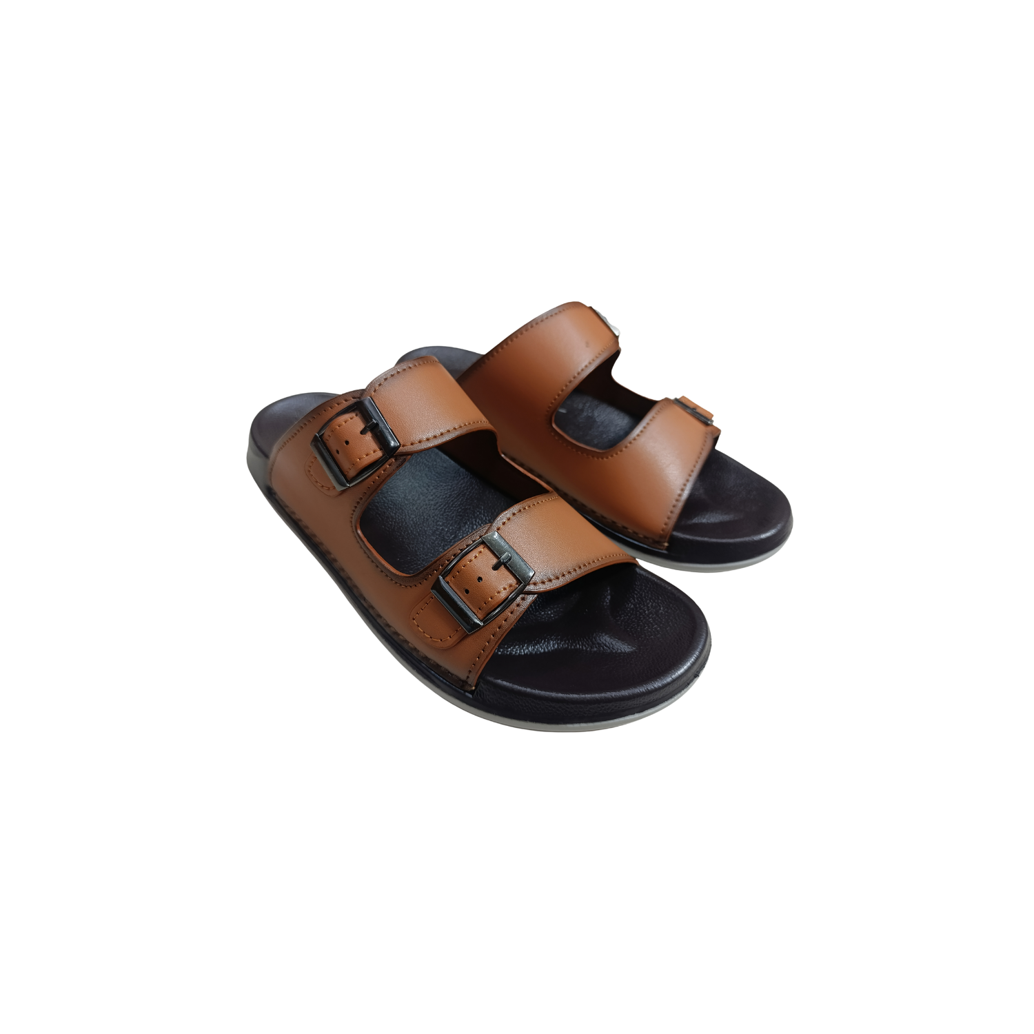 Men’s Double-Strap Buckle Slide – Tan Brown (CM-303)