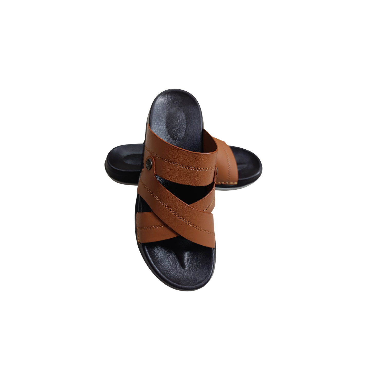 Men's Cross Strap Comfort Slides – Tan Brown (CM-302)